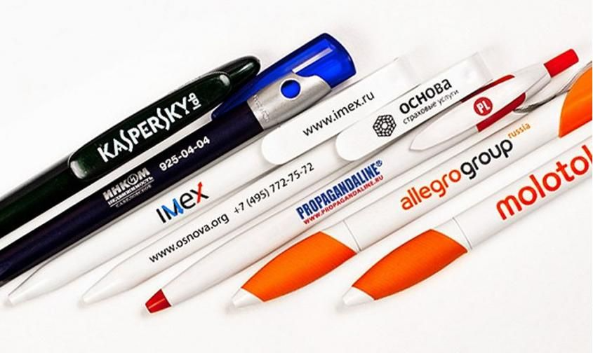 Печать на ручках выполняется с учетом того, чтобы краска долго не стиралась, и чтобы логотип был виден, когда используется ручка. Именно поэтому слоганы и изображения наносят на верхнюю часть ручки или на клип.